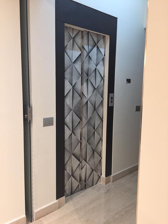 Spazio81 ha realizzato tutte le vetrine della boutique con i prespaziati, mentre le porte degli ascensori sono state realizzate con il cast, una speciale pellicola termodeformabile, che riproduce un soggetto WallPepper® del catalogo Trend_line, "Triaston" della particolarissima collezione "Materico".