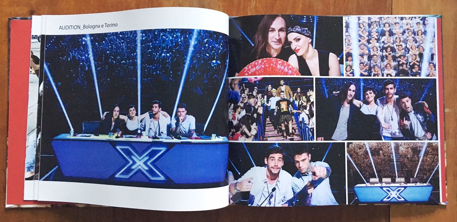 Il libro brossurato di X Factor 10, realizzato con tutta la cura e l'attenzione estrema alla qualità che la nostra squadra dedica ad ogni progetto editoriale, ha la copertina rigida, è stampato su splendida carta patinata opaca da 250 grammi e dispone all'ultima pagina di una tasca speciale dentro la quale sono stati inseriti gli scatti più emozionanti realizzati da Virginia durante l'ultima puntata del programma. Questo ingegnoso sistema è stato ideato per permettere alla produzione del programma di avere il libro pronto da regalare la sera della finale ai giudici di X Factor, al direttore artistico Luca Tommassini e al conduttore Alessandro Cattelan: un espediente tecnico, quello della "tasca", semplice ma quanto mai efficace!